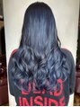 2枚目 ネイビーブルーのハイライト♪艶巻き ネイビーブルー インナーカラー ハイライト グラデーションアディクシーカラー