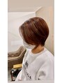 前下がりの大人ショートスタイル丸みとクビレのバランスよくデザインさせていただきました。カラーはハイライトデザインに白髪が目立たないようにハイライトブリーチをデザイン白髪ぼかし染めをさせていただきました。