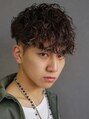 バックの刈り上げの高さを高めに設定して前下がり気味でカットし、強めのスパイラルパーマをかけたVマッシュ!前髪のボリュームと艶っぽい質感が特徴的な男らしいスタイルとなってます!