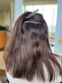 初めてご来店のゲスト様。半年前に縮毛矯正履歴とのことでしたが内側は戻りなのか履歴なしなのか全くかかってないようなので全体に施術させていただきました。黒のミルボンプレミアムトリートメントもセットで艶やかなストレートを実現。