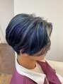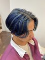 骨格補正カットで絶壁だけど頭の形を良く見せます。ケアブリーチで最小限のダメージでブリーチして透明感抜群のサファイアブルー。オリジナルのデザインカラーお任せあれ♪品のあるメンズカラー。下北沢/メンズヘア/マッシュ/デザインカラー/ハイトーンカラー