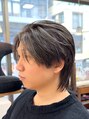 メンズカット/毛流れセンターパート/ニュアンスウルフ/ハイライト/シルバーハイライト