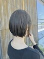 パツっとラインのミニボブ乾かすだけで自然にまとまるようにカットワンカラーで透明感のあるオリーブに♪色落ちも赤みを消してくれるのでオススメ!髪質改善トリートメントで今までにない手触りと艶髪を体感してください!
