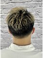 サイド~襟足をソフトに刈り上げ、前髪~トップにかけて長さを残しツーブロックにして動きにアクセントを!ザクザクとした束感がポイントです♪カラーは根元と刈り上げ部分はあえて黒い地毛のまま残し、毛先を2回ブリーチして淡く色をのせてます♪