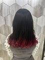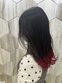 毛先をロイヤルレッドにしたエンドカラーです☆上のブラックカラーにもレッドを混ぜて、毛先と馴染みやすい色を作っています♪巻いてもかわいい、カラーです(^^)