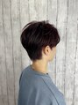 刈り上げないツーブロックのセンターパートヘア♪♪ベースカラーはダークトーンのレッドブラウン♪そこにハイライトカラーを施し、その部分にも赤色をオンカラー♪赤色の濃淡のコントラストを楽しめるハイトーンカラーです♪