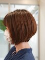 - 丸みと艶がいいバランスの大人のショートボブ。顔まわりの長さも調整しやすいので小顔のデザインにも◎