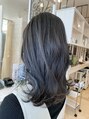 暗めカラーのブルーアッシュ!落ち着いた雰囲気で柔らかさと透明感があるカラーです。ベースが明るいほど透明感が増すのでハイライト後のカラーにオススメしています。インナーにはブルーが入っています。