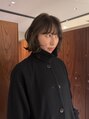 ワイドに切り込んだ前髪と、角のあるボブを組み合わせたスタイル。伸ばしかけのボブもバングデザインで癖のあるお洒落なスタイルにすると楽しく伸ばしていけるかなと。
