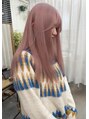 柔らかいピンクベージュ。ブリーチ2~3回は必要となります。ケアブリーチでケアしながら優しいブリーチでダメージを最小限に抑えて施術させていただいております。