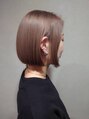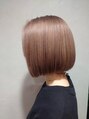 全頭ブリーチをさせて頂き、オンカラーでプラチナベージュに。カットは切りっぱなしのボブ。外ハネにも出来るようにしております。ブリーチをしているのでカラーは透明感のある色になります。