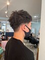 【気に入ったスタイルはブックマークをしていただくと便利です】短い長さでも少しツイストを入れて立ち上がりを出したパーマです♪ワックスで簡単にセットできるので、朝は楽々!おススメです☆