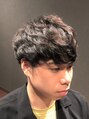 トレンドのクラウドマッシュとツーブロックをベースに、ゆるふわウェーブをかけたパーマスタイル。爽やかなのにセクシーなセンターパート、男の優しさを引き立たせるダウンバング、スタイリングで2wayが楽しめます!