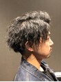 軟毛・猫っ毛さんの弱点を完全にカバー!前下がりマッシュにツーブロックでメリハリをつけ、緩めのツイスパパーマでボリュームを出しました。パーマによって前髪を上げてもキープできます。どの方向から見ても完璧なシルエットのおしゃれメンズパーマです。