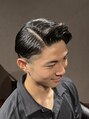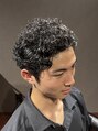 強いくせ毛の持ち主さん。ツーブロックショートをベースに七三分け×オールバックに自然な流れをつけたスタイリングで、フォーマルな場でも魅力的に映えます。クラシックなスタイルに現代風アレンジを取り入れた、大人の色気と魅力が際立つスタイルです。