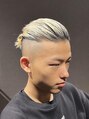 あえて根元を外してブリーチ、もしくは根元をリタッチしないことで立体感を楽しめます。フェードの高さは骨格や髪質を計算して最高にかっこいいラインを調整、刈り上げは0.8mmから3mmへグラデーションをつけています。ストリートファッションと相性抜群!