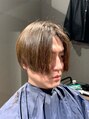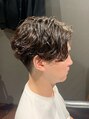 ミディアムショートの前下がりマッシュに緩めのメンズパーマで動きをつけました。ツーブロックとの相乗効果でセクシーな印象に。センターパートでおでこを見せるとスッキリ感も出て、ストレートのセンターパートよりも格段にオシャレ度がアップします!