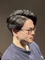 黒髪を生かしたクール&セクシーなかき上げセンターパート。顔周りがすっきりと見え、清潔感のあるおしゃれ感を演出。メンズパーマで緩いカールをつけると大人の色気が出てスタイリッシュに。サイドとバックはツーブロックで刈り上げて膨らみを抑えています。