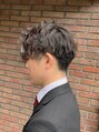 ツーブロックとメンズパーマの最強モテスタイル。キメすぎないナチュラルな束感とウェーブを出した緩めスパイラルパーマ。毛束にランダムな動きが出てめちゃくちゃかっこいい!成人式や結婚式、パーティーなど、セミフォーマルなシーンにピッタリです!
