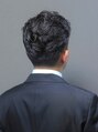 ツーブロックで刈り上げたサイドとバック、くせ毛を活かしたウェーブ感がポイントのオールバックスタイル。センターパートにもアレンジできるメンズショートヘアなので、20代ビジネスマン、就活や面接対策におすすめの髪型です。