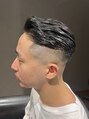 クラシックなスタイルに現代風アレンジを取り入れた、大人の色気と魅力が際立つ七三分け×オールバックのスタイル。スキンフェードカットとのコントラストが男らしくてカッコいい!艶系グリースでなでつけるようにスタイリングするがおすすめです。