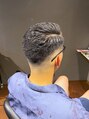 ビジネスマンのスキンフェード。スーツ姿でビシッとキマるだけでなく、フォーマルシーンで芸術性も感じるとてもお洒落なスタイルです。全体のシルエットをカッコよくデザインする骨格補正カットを施して、どこから見てもカッコいいシルエットになっています。