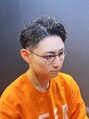 ツーブロックショートをベースにかき上げ前髪でオールバックに仕上げたスタイル。くせ毛の流れを活かしたパーマ風の毛流れが洗練されたお洒落感を演出。オンでもオフでも好印象、女性ウケも抜群です。下ろしてセンターパートにもアレンジ可能な自在ヘアです。