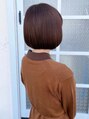 あごラインの前下がりボブです♪肩につかない長さで、はねづらくまとまりがでます♪ブラウンに赤味を少しプラスしたココアブラウンでツヤ感のある仕上がりに!