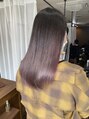 ピンクパープルを、透明感が出るように一工夫♪どの長さの方でも相性がいいカラーです!根元付近は暗めだと更にかわいいので、白髪染めとの相性もいいですね。