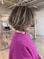 ショートボブ+バレイヤージュで海外風デザインに。[千葉/白髪ぼかしハイライト/バレイヤージュ/ブリーチ/デザインカラー/ミディアムレイヤーカット/レイヤーカット/ボブ/ウルフカット/ショートヘア]