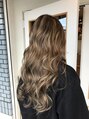 全体に太めにハイライトをいれて上からグレージュ系のカラーを入れてます。太めにすることでアイロンで巻くと立体感がでて可愛く動いてくれます。カットはあまり量を減らさずに重ためにすることでより可愛くなります!