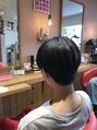 レディースのショートボブスタイルです。サイドはツーブロックにして軽さをだし、後ろは少しかぶるような感じに横に線が入るようにカットしました☆