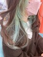 デザインカラー/特殊カラー/ダブルカラー/バングカラー/インナーカラー/切りっぱなし/ロング/グリーンカラー/ハイトーンカラー/ブルー/ベージュ/透け感/ツヤ髪/韓国風ヘア/学生/艶トリートメント/酸熱