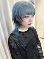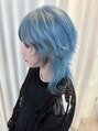 ペールブルー×ブラックのエンドカラーで個性派ウルフスタイル