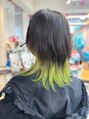 ハイトーンカラー/ブリーチ/インナーカラー/グリーンカラー/イエローカラー/ネオンイエロー/ライムグリーン/ペールグリーン/シアーカラー/ミルクティーベージュ/姫カット/ケアブリーチ/切りっぱなしボブ/インナーカラー/レイヤーカット/学生/艶トリートメント