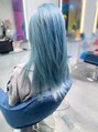 ハイトーンカラー/ブリーチ/アイスブルー/水色/ペールトーン/ホワイトカラー/シアーカラー/姫カット/ケアブリーチ/レイヤーカット/学生/艶トリートメント