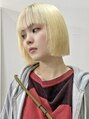 ハイトーン×ぱっつん前髪切りっぱなしボブ 丸くないボブ