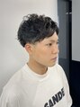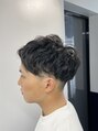 スパイラルをややゆるめに。今日はツーブロック部にフェードを仕込みました☆日焼けしていてセクシーな雰囲気を出すことができました。ンズカット,アイブロウ,シェービング,スパイラルパーマ,フェード6~3mm銀座<理容室>東銀座<理容室>