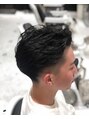 王道ツーブロックスタイルなら高めに刈り込んで色味をしっかり出したフェードにすればサイドの収まりもしっかりおさまりますよ。