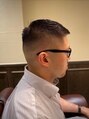 クロップフェードスタイルです。スキンフェードで刈り上げ重さを残しグリースで寝かせるようにセットしました。