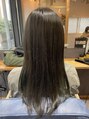ブリーチ未使用、耳周りのインナー以外はブリーチ履歴もなしの10トーンぐらいの髪へのカーキ系カラーです。赤みもしっかり抑えられてカーキ感も出ていて綺麗な髪色です。
