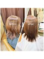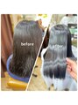 左の状態だと、髪質改善トリートメントで改善でき、、、そうな感じの方が多く御来店されます、右のような状態にドライヤーで乾かすだけで改善するのは「髪質改善縮毛矯正」です。くせ毛さんが一番さきに施術したほうがよいのは髪質改善縮毛矯正になります。