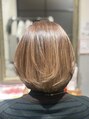 やわらかなベージュカラーで、髪本来のツヤと立体感を引き出した大人ボブスタイル。重たく見えやすいボブでも、表面に自然な動きが出るようにカット。光に当たるたびに透けるような質感で、上品さと柔らかさを感じられる仕上がりになっています。