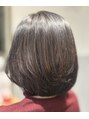 すかれ過ぎている部分を丁寧にカットし直し、まとまりやすく扱いやすいシルエットに仕上げています。カラーはやわらかいラベンダーカラーで、暗くなり過ぎないよう透明感を残して染めています。