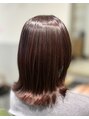 オレンジ系カラーはお顔の血色を良く見せてくれる効果があり、明るく柔らかい印象にしてくれるのが魅力です。さらに髪質改善後の髪にカラーを施すことで、光をしっかり反射し、写真でも分かるようななめらかなツヤ感を実現しています。
