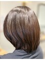 赤みを抑えた上品なマットアッシュカラーで、柔らかさと落ち着きを両立した仕上がりにさせていただきました。光に当たるとほんのり透けるような質感が出るので、重く見えず大人っぽい印象になります。