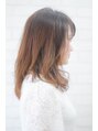鎖骨下のボブ。毛先は重みを残し表面に軽くレイヤーを入れ動きを出す。カラーは10トーンのベージュ系で柔らかさを出して毛先に大きいカールのパーマを当てる。伸ばし中の前髪もワンカールパーマを当てることで自然にふんわり流れてくれ普段の手入れが楽に!