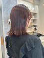 [レッドブラウン/艶カラー/ボブ/切りっぱなしボブ]