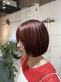 アンブレラカラーの履歴を生かして赤髪に。Instagram @kkalen_2551レイヤーカット/レイヤー/小顔カット/赤髪/暖色カラー/ブリーチカラー/ブリーチなしカラー/ハイトーン/艶髪/イヤリングカラー/顔周り/酸性ストレート/デザインカラー/カラー/ボブ
