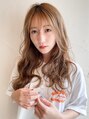 波巻(32mm)をラインダムにしてラフ感を演出◎ポリッシュオイルをつける事でブリーチなしでも外国人風の透明感♪髪質改善トリートメントとも相性抜群です